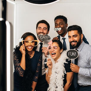 Hi there! We're Snapology, and we can free you from the worry of entertaining your guests. We're a mobile photo booth business that turns any event—from weddings and corporate parties to birthdays and school functions—into a fun, interactive experience.